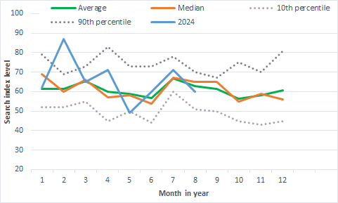 In our view, these are significant initiatives from the new PM and we expect some uptick in interest for non-residents to take up permanent residency or citizenship after these announcements, especially more so for interest in citizenship. There has already been notable uptick in interest for Singapore citizenship this year compared to previous years (see chart below of the index of level of people searching for “Singapore citizenship application” in Google).