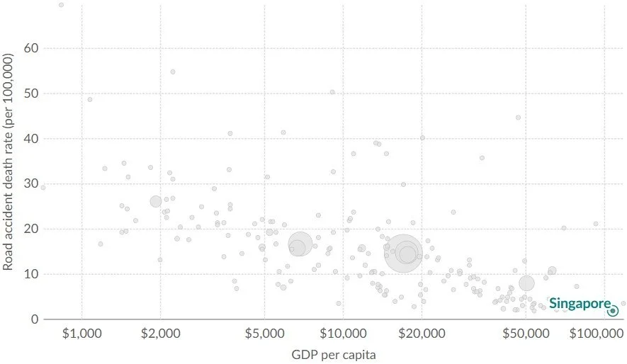 Road Safety: Singapore ranks first with only 1.9 deaths per 100,000 individuals (death rate), alongside Sweden and Malta, for having the lowest number of deaths caused by road incidents globally. In comparison, the United States has over 5 times more with a death rate of 10.8 per 100,000 individuals.