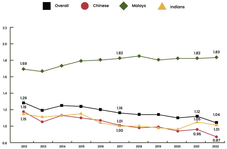 Chart 2: Total fertility rate in Singapore’s resident population by ethnic group